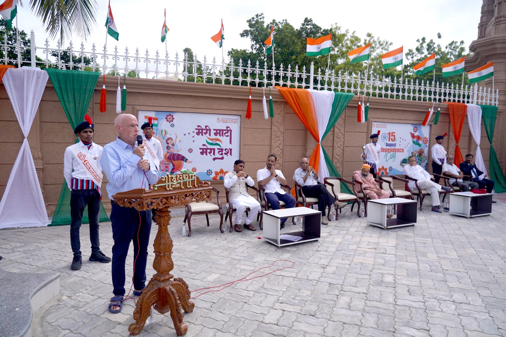 The next day they had a special ceremony with all the students present to welcome us. They took us later on a tour of a magnificent white marble Jain temple nearby. The next day we started sitting in with teachers and when we were ready, teaching classes by ourselves or assisting teachers with classes. Mostly it was just conversation class and one person taught music because she is a music teacher in Russia. They assigned us classes according to our preferences and abilities. I also tutored the hostel boys in the evenings. They came to me with questions in all subjects and to my surprise, they especially enjoyed poetry. I engaged the kids in conversations or more often, they engaged me first! – at lunch and in the chess room. I don’t play chess, so I played carom (that was a lot of fun!) I accompanied the kids on the field trip to the Jain temple. I went with staff and children on an outing to plant trees at a government school, and I could see the difference in happiness between those kids and the Gokuldham children. That really showed me that Gokuldham is making a difference. I really enjoyed the simple interactions with the super friendly staff who brought us food, and the lovely chai (tea), of which I’ve become a big fan while here in India. I was here on August 15, which is India’s Independence Day, and I had the honor of giving a short speech. Some of the little kids were dressed in costumes as a little Mahatma Gandi, Jawaharlal Nehru, Indira Gandi and historical princes and princesses. It was really cute. I learned some Hindi and even Gujarati. The volunteers were very well taken care of at Gokuldham. Aside from our wonderful interactions with the staff and students, I also became fast friends with the other volunteers. My 4 weeks at Gokuldham were an amazing time! I would recommend Gokuldham wholeheartedly to anyone wanting an authentic, safe, friendly, rewarding and memorable experience in India!