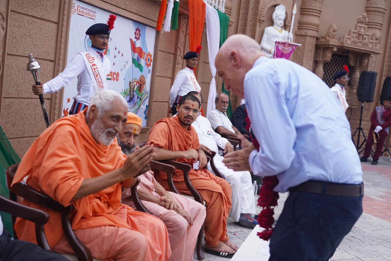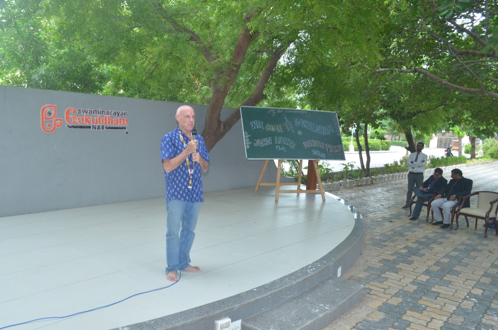 The Gokuldham school/campus is a magical place! The biggest evidence of this is the boundless energy and joy of the children. These kids are happy to be here and they are very appreciative of visiting volunteers! They are being nurtured and taught well and I think they feel how special this place is and how well they are treated and cared for. First, my travel buddy and I were picked up promptly at the train station by two staff members, along with another volunteer who had already spent two weeks here. They took to the campus, which is outside us for lunch, then for ice cream, and then of town and has its own private security gate They showed us around the campus, which has a large beautiful temple that has a dining hall on the ground floor, as well as classroom buildings, boys’ hostel living quarters for the swamis, a small home for the elderly, a water filtration plant and a cow shed. They introduced us to key staff, then let us rest from our trip, and after dinner let us relax in our rooms.